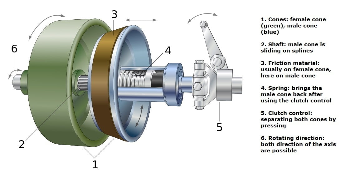 圆锥离合器用于低速应用,也用于ix发动机和汽车。