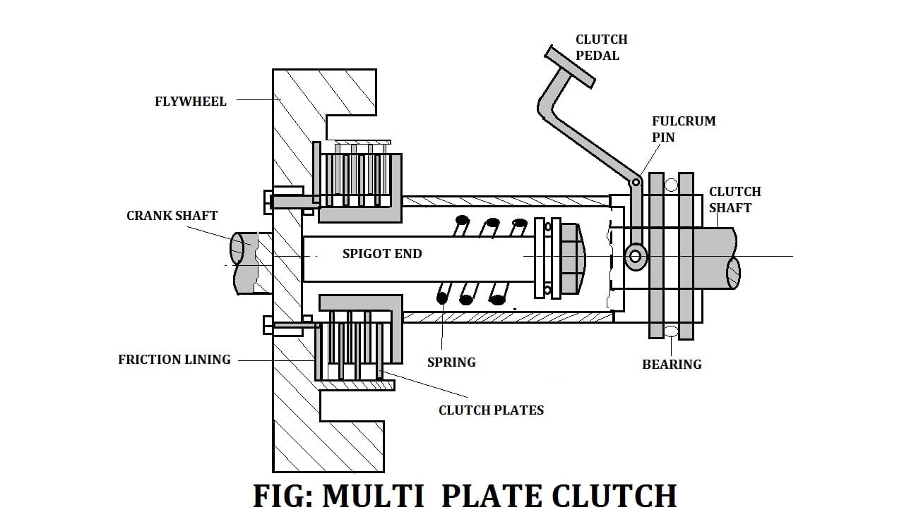 当驾驶员松开离合器踏板时,这些特殊的部件将插入凹槽,当驾驶员踩下离合器踏板时,驱动轴和从动轴开始一起旋转,这些部件从凹槽中出来,发动机轴在没有从动轴的情况下旋转。