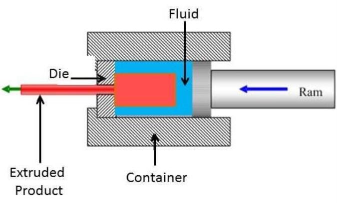 当一种材料受到静水压力而没有摩擦时,它的延展性就会增加。因此,这种方法可以用于典型挤压方法太脆的金属。