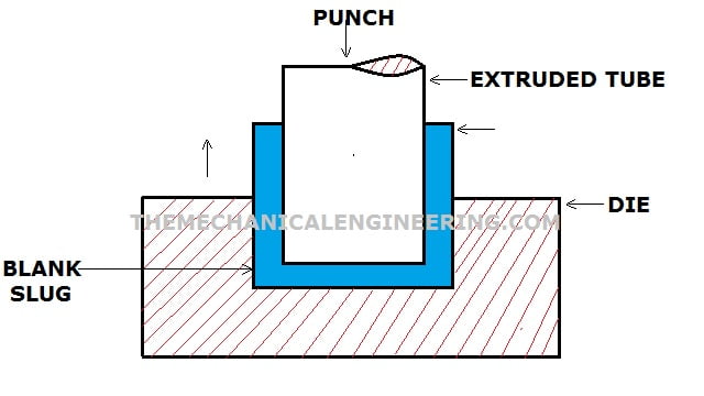 在常规冲击挤压操作中,适当润滑的段塞被放置在模腔中,用冲床在一次冲程中命中。这导致金属通过模具和冲孔之间的间隙回流到冲孔周围。